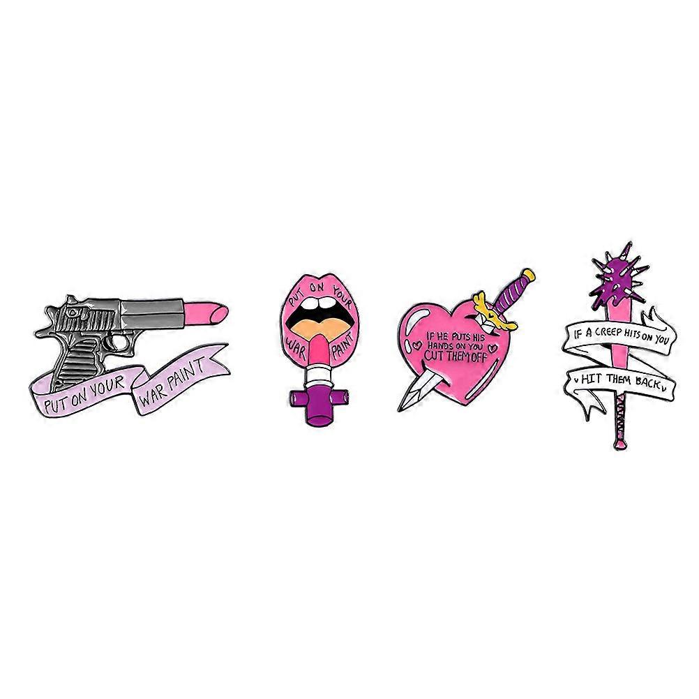 4Pcs Women Lovely Cartoon Brooch Feminism Lipstick Badge Chic Clothing Pin