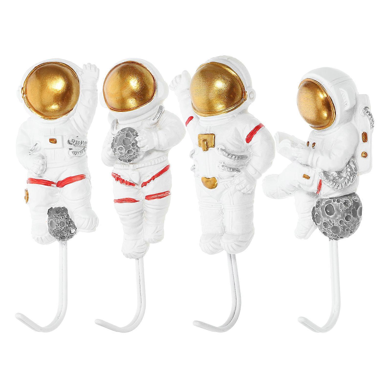 4pcs Astronaut Wall Hooks, Self Adhesive Decorative Coat Hangers for Home Organization, Hanging Towels, Handbags, Hats on Smooth Surfaces