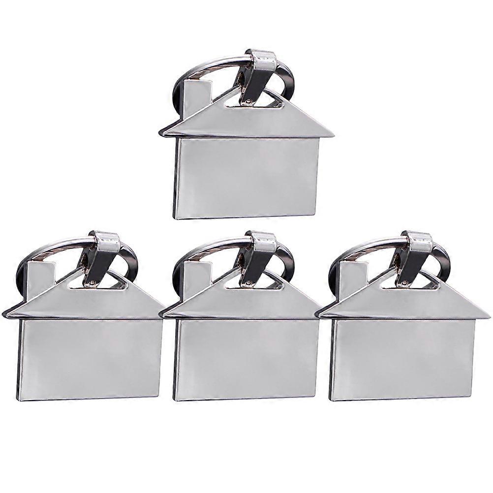 4pcs House Shaped Metal Keychains, Durable Pendant Key Holders for Bags, Car Keys, Home Decor, Creative