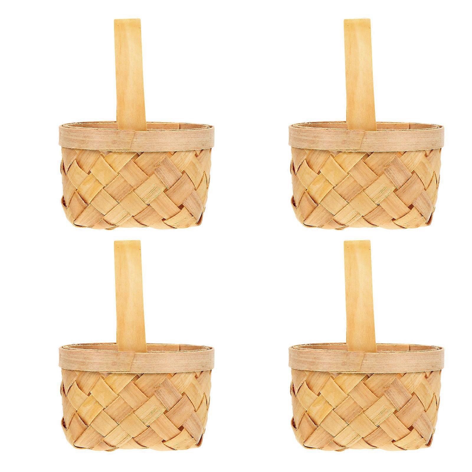 4Pcs Hand-Woven Flower Baskets Round Beige Gift Baskets Ideal for Themed Party Decorations
