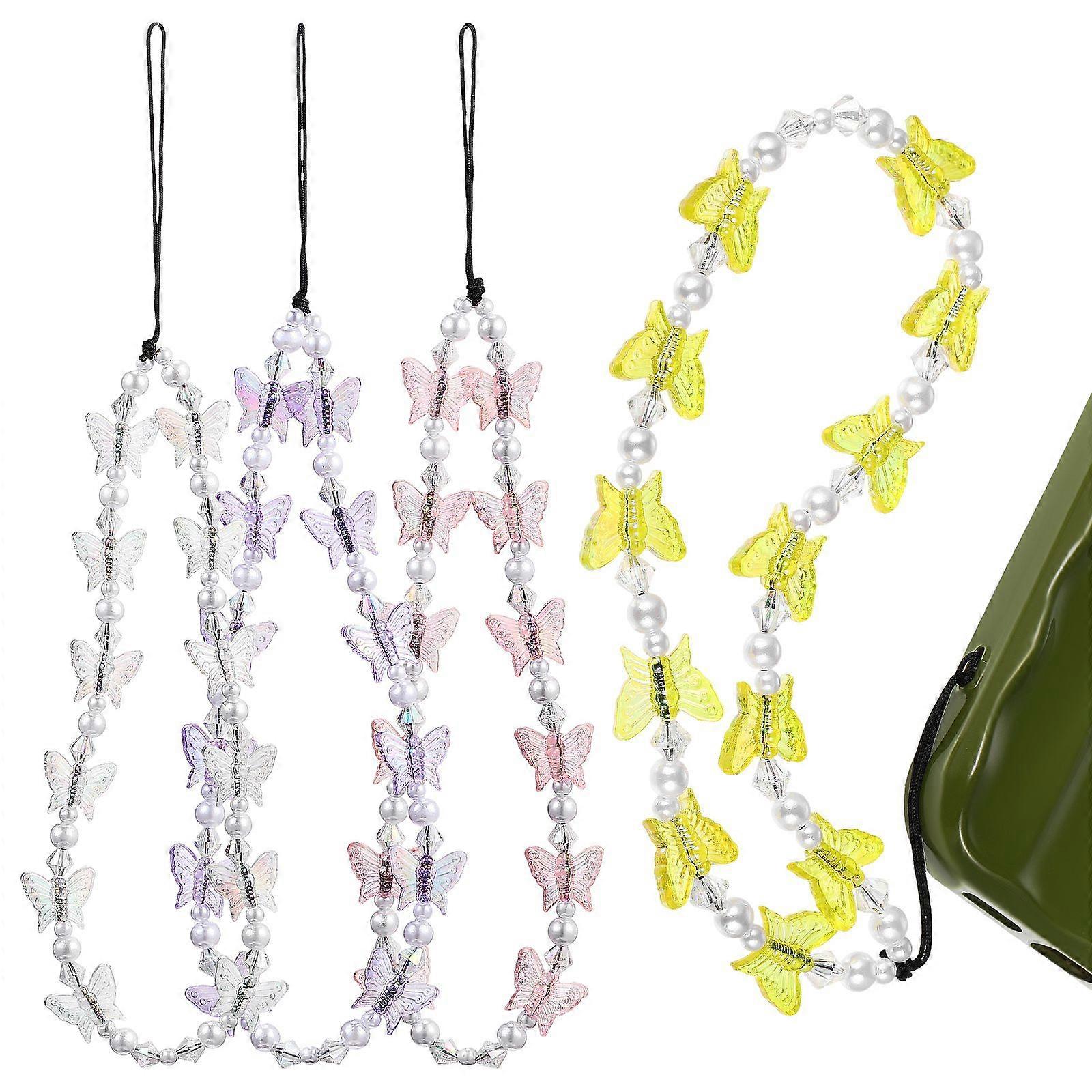 4Pcs Mobile Phone Lanyards Butterfly Beaded Phone Bracelet Strap Keychain Phone Hanging Decoration