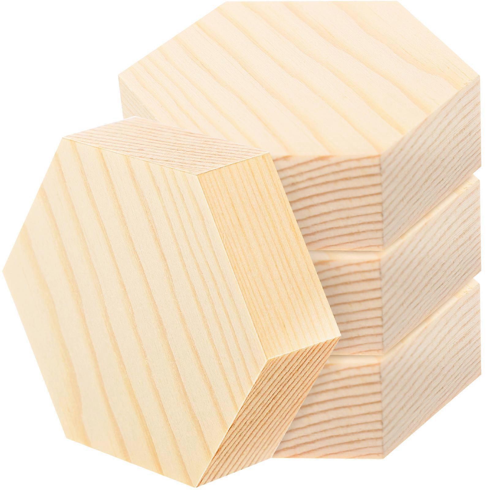 4pcs Unfinished Hexagon Wood Slices DIY Craft Cutouts Thick Premium Pine for Creative Projects & Decorations