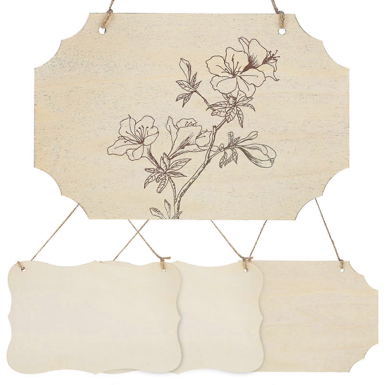 4pcs Unfinished Hanging Wooden Signs, Blank Door Signs With Ropes, 9 X 5.7 Inch Decorative Hanging Signs 2 Style Wood Sign For Diy Painting Wall Xmas