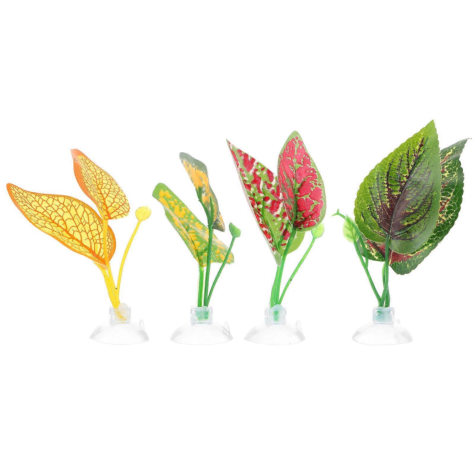 4Pcs Simulated Leaves Ornaments with Suction Cups Reptile Tank Plastic Leaves Decor