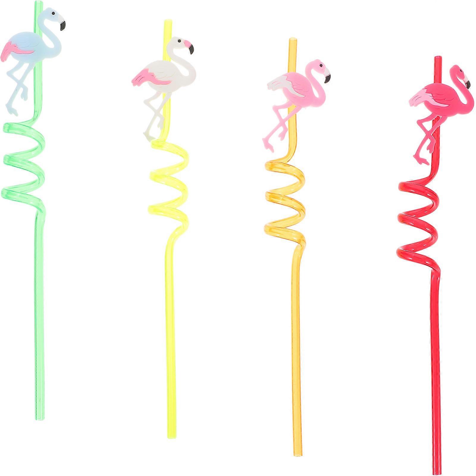 4pcs Cartoon Flamingo Curly Drinking Straws Party Favor For Festivals And Celebrations Fun Spirals Beverage