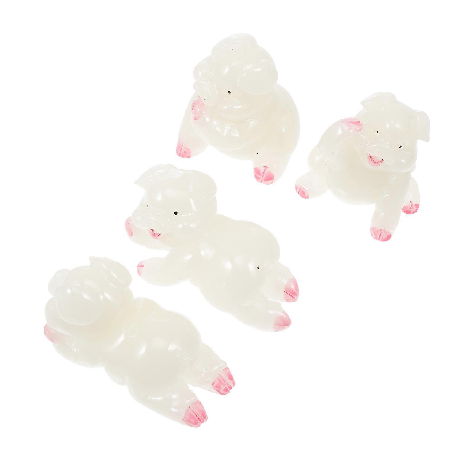 4pcs Luminous Resin Pig Figurines, Miniature Animal Models for Fairy Garden, Balcony & Children's Room Decoration