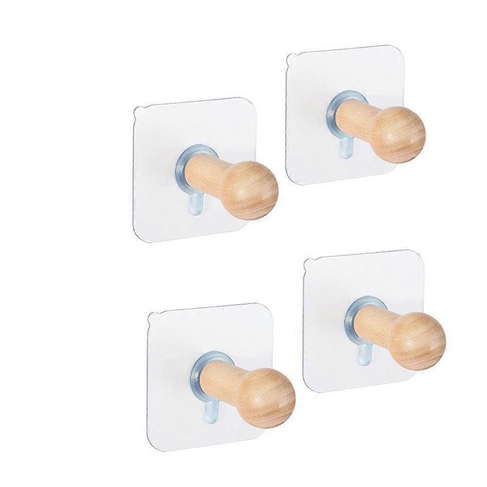 4Pcs Adhesive Wooden Hooks Nails Wood Peg Hooks Hat Storage Wall Mounted Hook