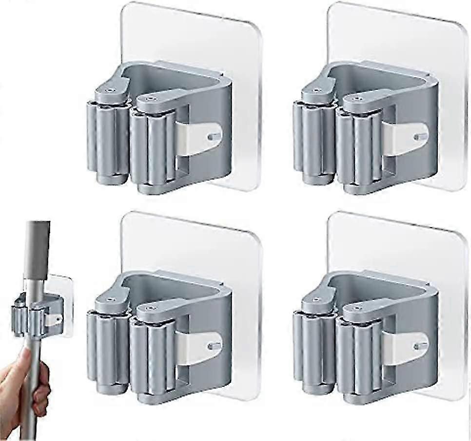4Pcs Self Adhesive Mop Holder Wall Mounted No Drill Broom Organizer Clip White