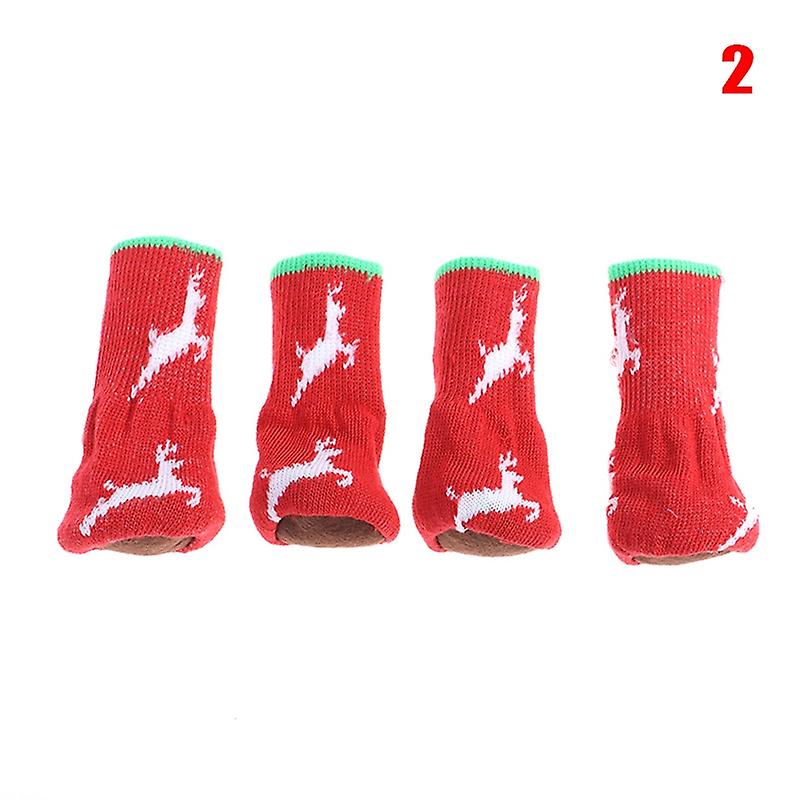4Pcs Red Knit Table And Chair Leg Cover Merry Christmas Party Ornament
