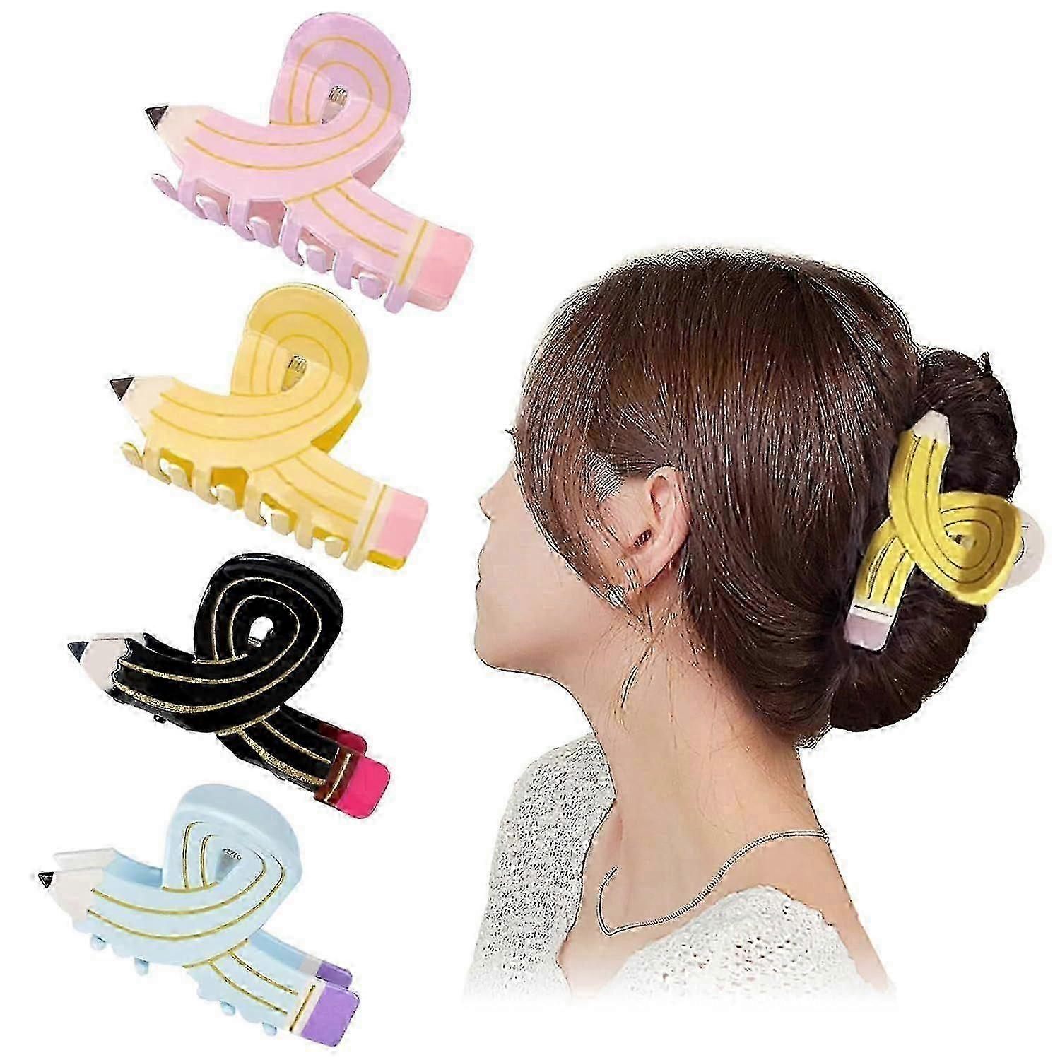 4pcs Pencil Hair Claw Clips, Cute Teacher Hair Clips for Women, Funny School Hairstyle Accessories, Back to School Hair Clips