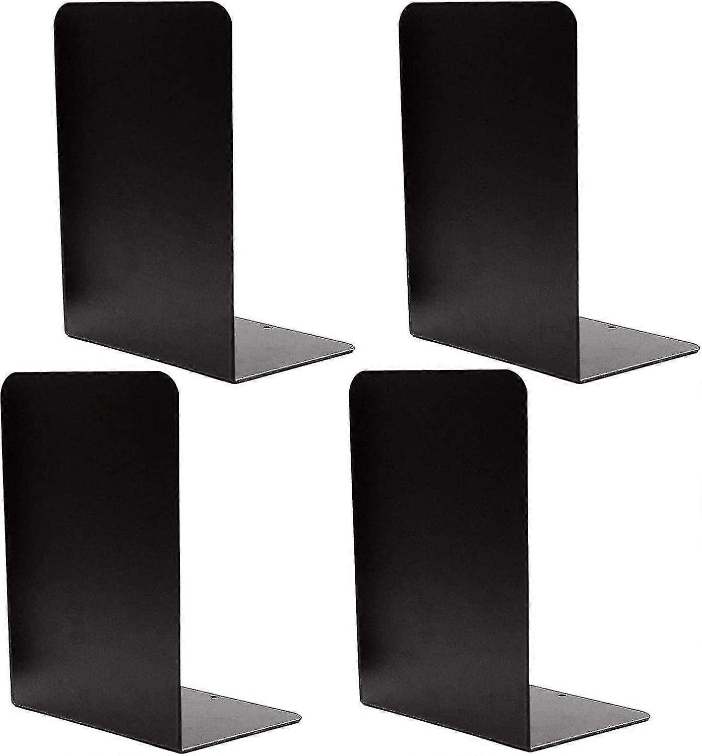 4pcs Heavy Duty Black Decorative Metal Bookends,metal Book Ends Supportwith Non-slip Rubber