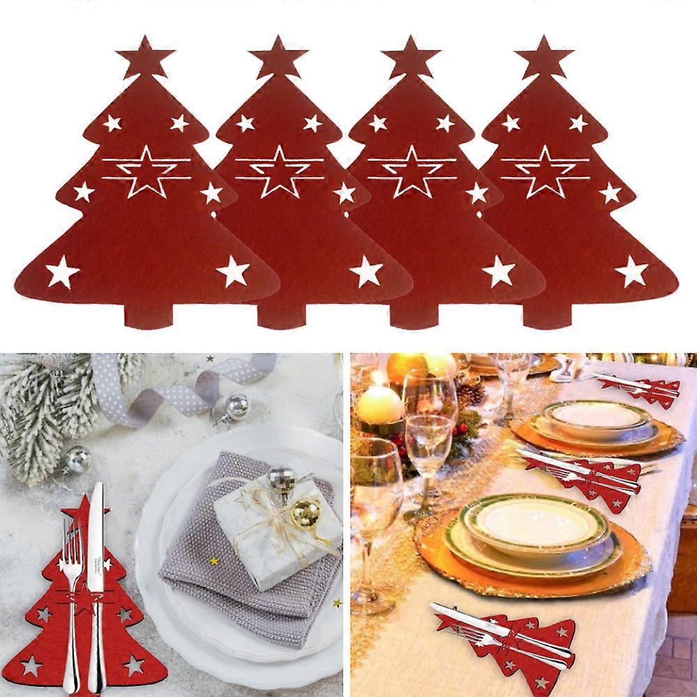 4Pcs Tableware Organizer Christmas Tree Shaped Knife Fork Holder Cutlery Bag Table Decor