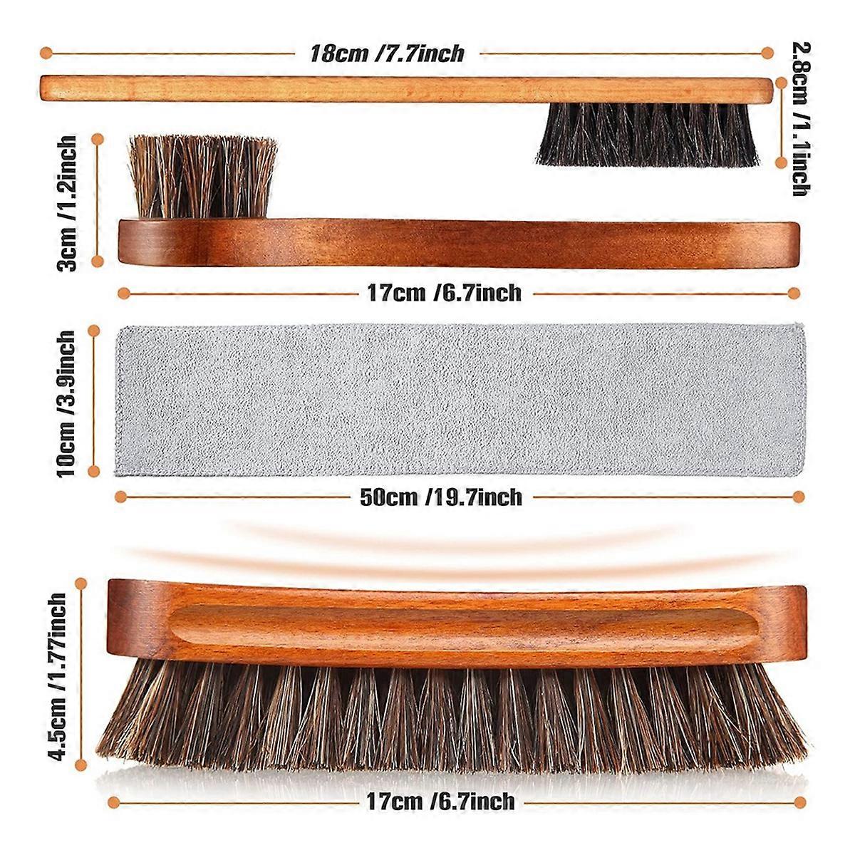 4 Pcs Horsehair Shine Shoes Brush Kit Polish Dauber Applicators Cleaning Leather Shoes Boots Care Br