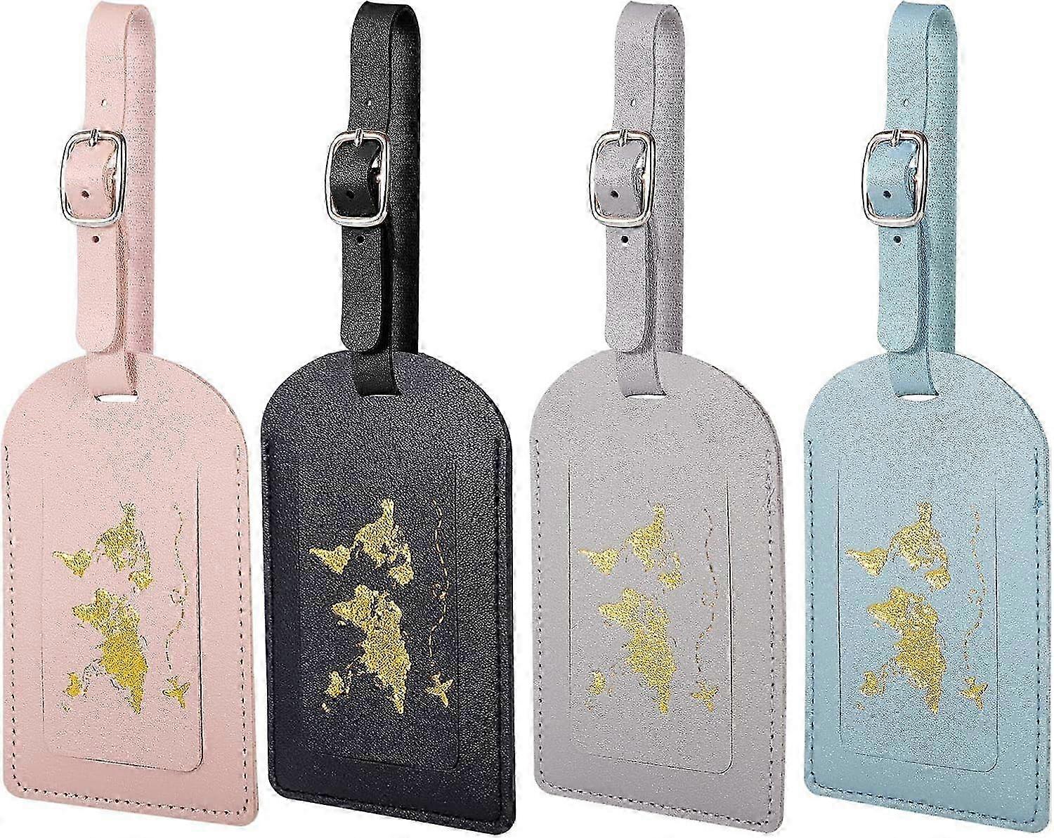 4 Pcs Pu Leather Luggage Tag Writable Travel Suitcase Tag with Adjustable Buckle for Handbag Pets, Airplane