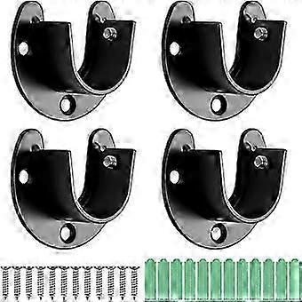 4Pcs U-Shaped Curtain Rod, 25mm Curtain Closet Rod Bracket, Stainless Steel Wardrobe Pole Sockets, Flange Bracket, Wardrobe Rod End with Screws, Black