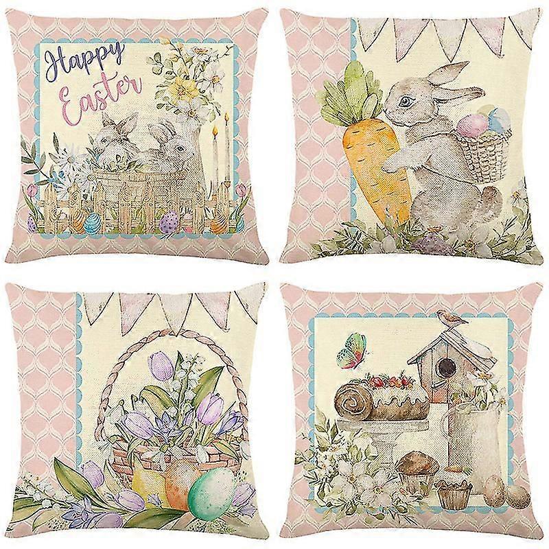 Set of 4Pcs Rabbit Flower Pattern Cushion Cover,45 x 45cm Cushion Covers Sofa Car Home Decorative Pillow Case (4 Different Styles)