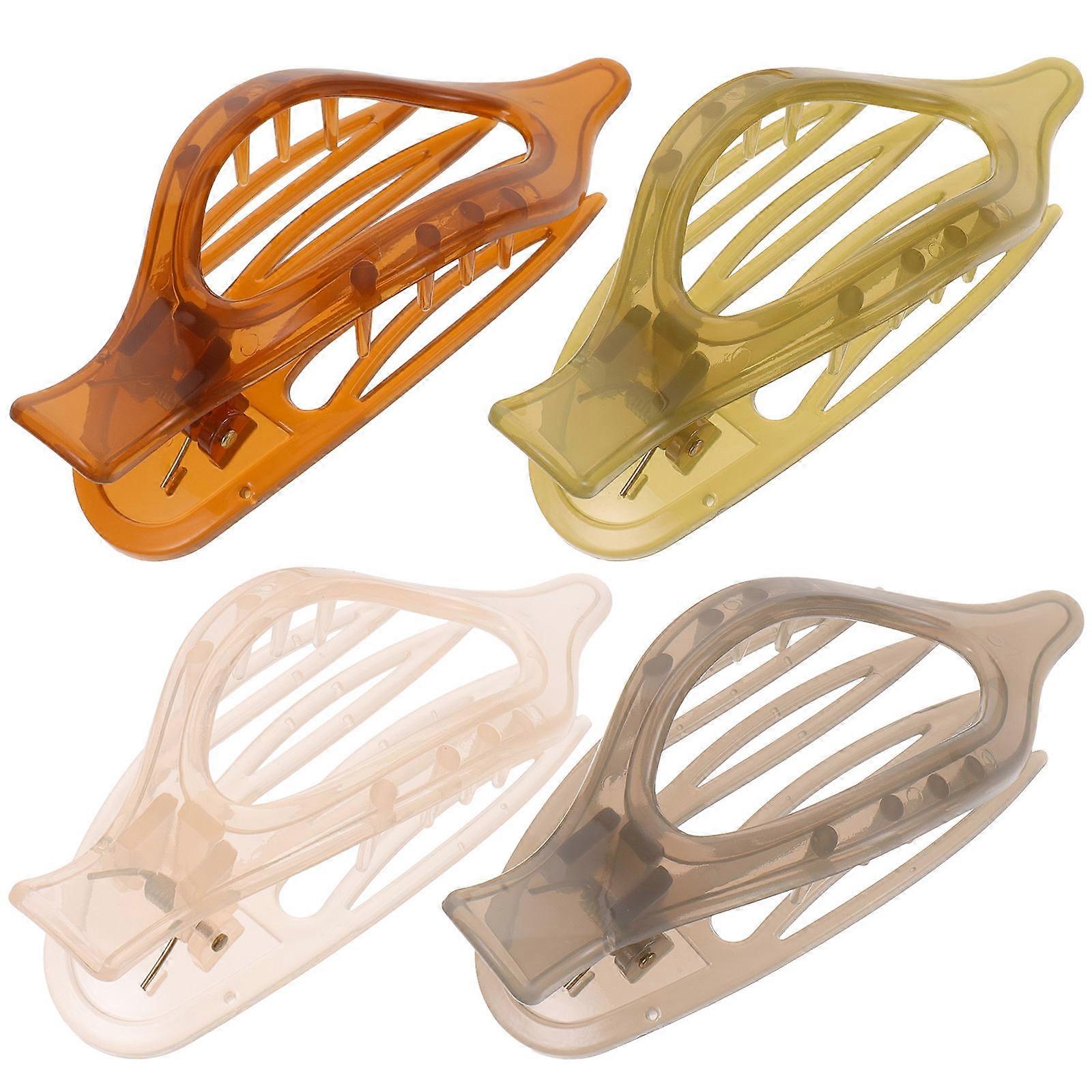 4pcs Elegant French Design Curved Hair Clips Styling Accessories Decorative Claw Clips for Women Aesthetic Jelly Colors Pink Grey Green