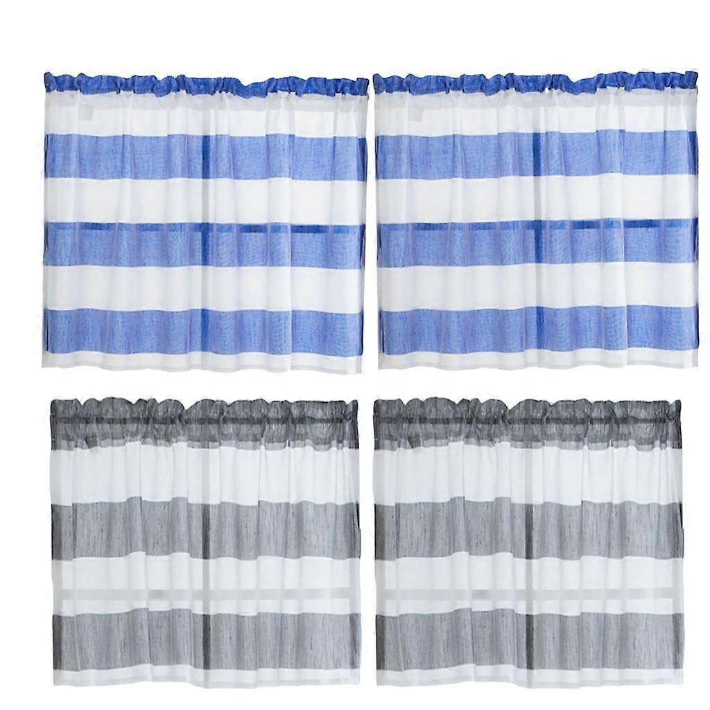 4Pcs (Grey &_ 74x60cm) Striped Short Valance Rod Pocket Curtains Kitchen