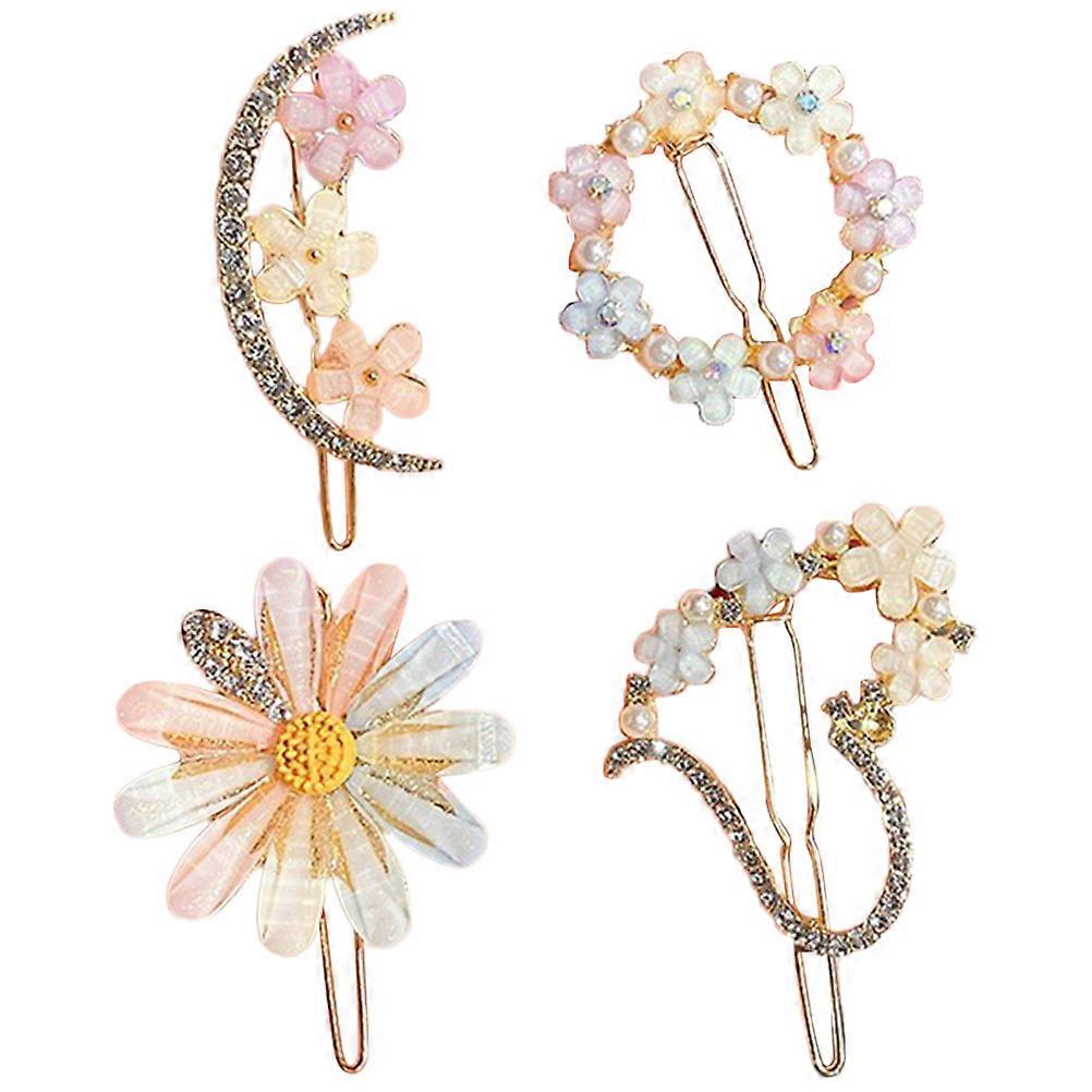 4Pcs Crystal Rhinestone Hair Clip Girls Hair Barrettes Flower Hairpin Hair Accessories