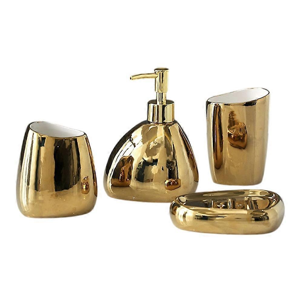 4Pcs / Set Ceramic Bathroom Accessories Toothbrush Holder Lotion Dispenser Bottle Rinsing Cup Soap Dish