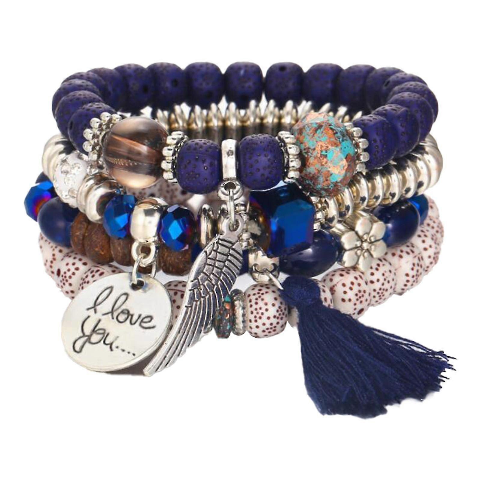 4pcs/set Bead Bracelets Bohemian Style Stackable Multi-layer Modern Nice-looking Charm Bracelet For Women