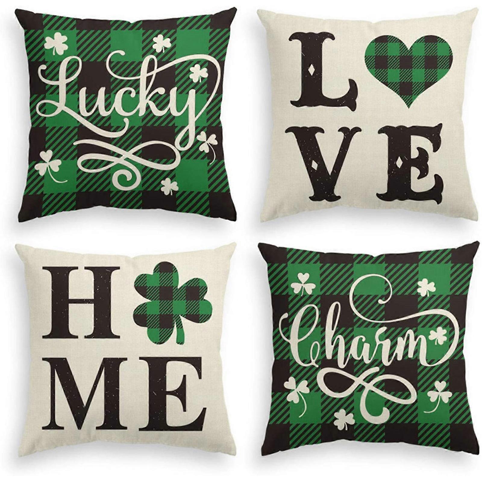 4Pcs/Set Saint Patricks Day Saying Throw Pillow for Case Plaid Sharmrock Home Love Lucky Charm Letters Decorative Cushion Cover for Irish Party