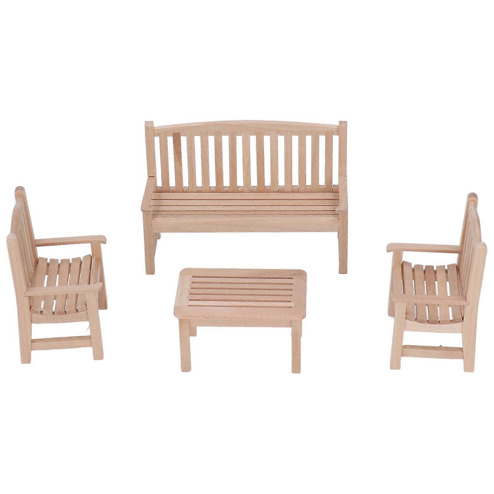 4Pcs Dollhouse Miniature Furniture Set Wooden Bench Chair Garden Furniture for 1:12 Scale Dollhouse Decoration