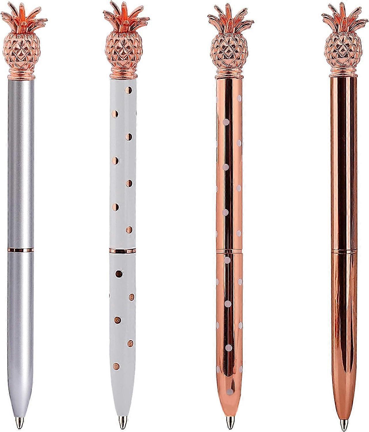 4 Pieces Pineapple Ballpoint Pens Metal Ballpoint Pens Rose Gold Pens for School Office Supplies, 1.0 mm, Black Ink