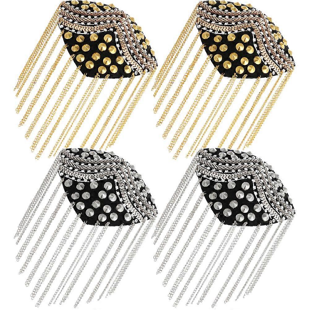 4Pcs Punk Rivet Tassel Epaulet Costume Accessories for Decor Assorted Color Alloy