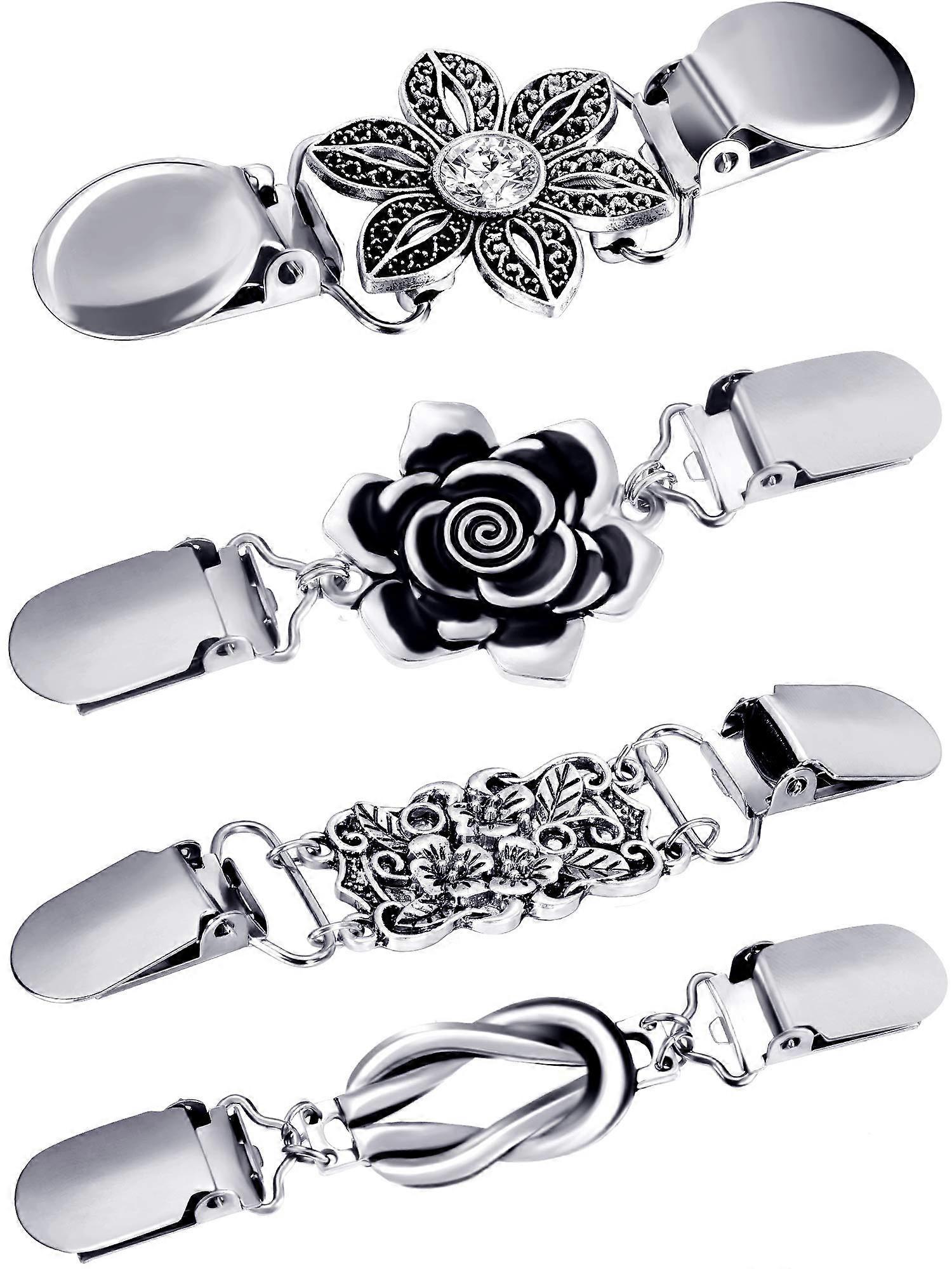 4Pcs Vintage Sweater Shawl Clips Retro Cardigan Collar Clips Dress Shirt Brooch Clips for Women Girls, 4Styles