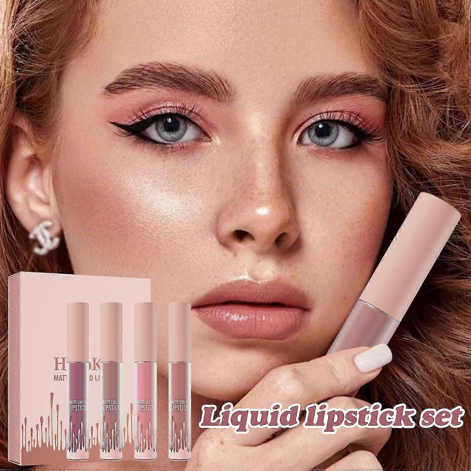 4Pcs Velvet Matte Liquid Lipstick Set, Waterproof Long Lasting Quick-drying Non-Stick Cup Nude Lip S