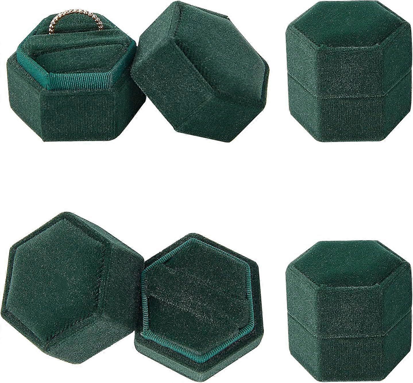 4 Pcs Velvet Ring Box Polygonal Ring Storage Box Jewelry Boxes Earring Jewelry Case for Wedding Engagement Birthday and Anniversary Dark Green
