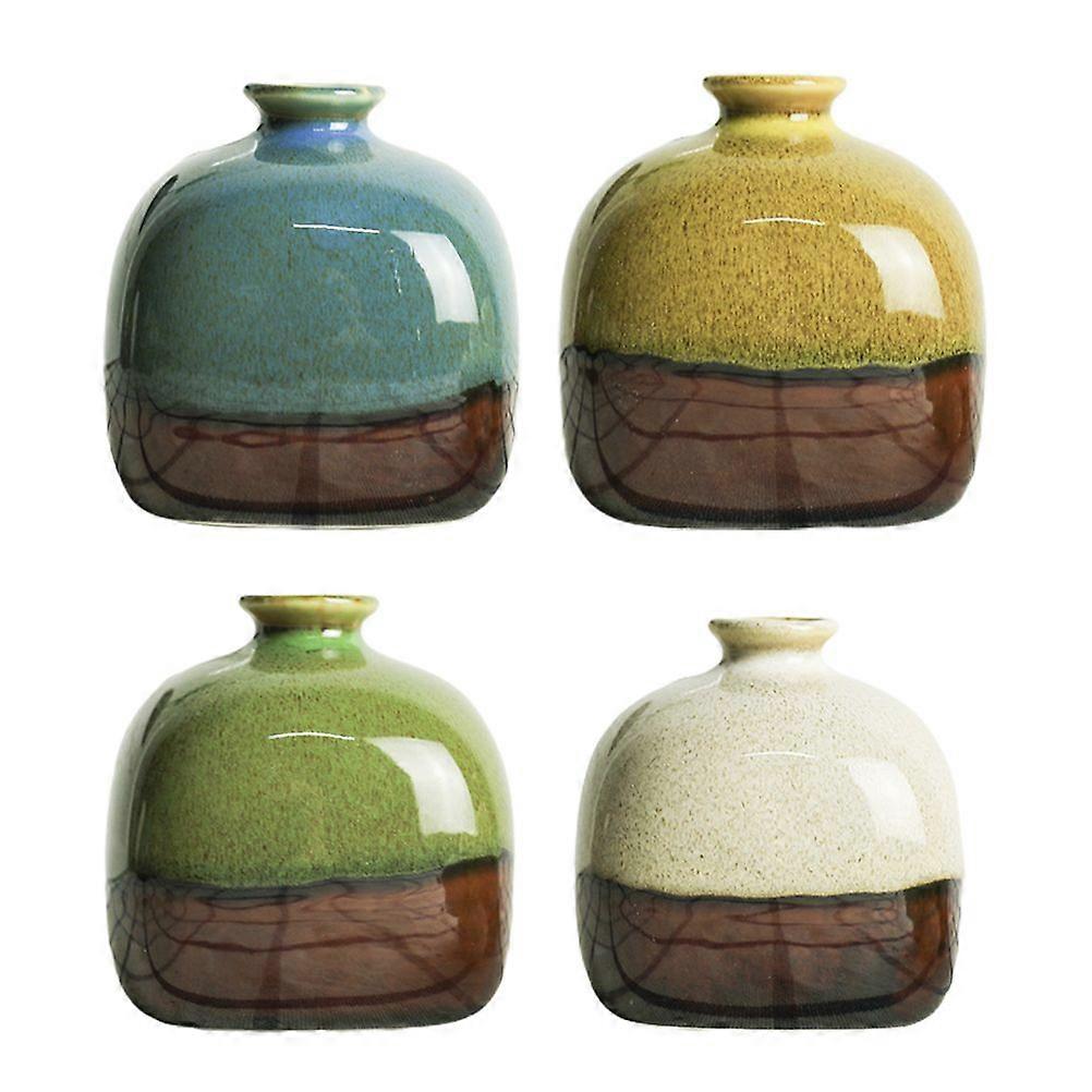 4Pcs Mini Ceramic Vase Green Plant Flower Arrangement Creative Bedroom Modern Home Decoration Furnishing Decorative Vases