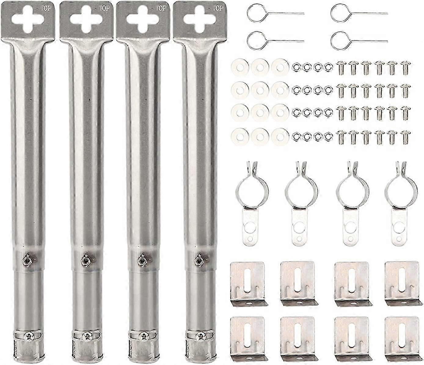 4Pcs Universal Adjustable Stainless Steel BBQ Gas Grill Replacement Straight Pipe Tube Burner Barbecue Accessories (Color : Silver)