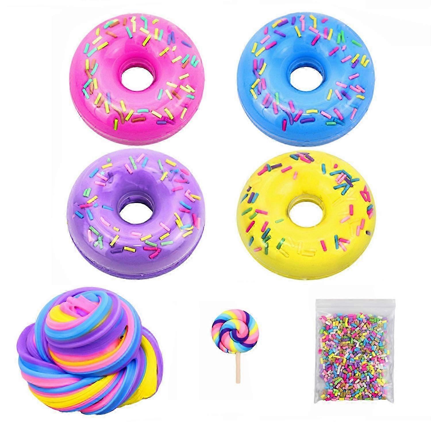 4Pcs Round Quick Recovery Clay Squeeze Toy with Lollipop Accessories Donut Candy