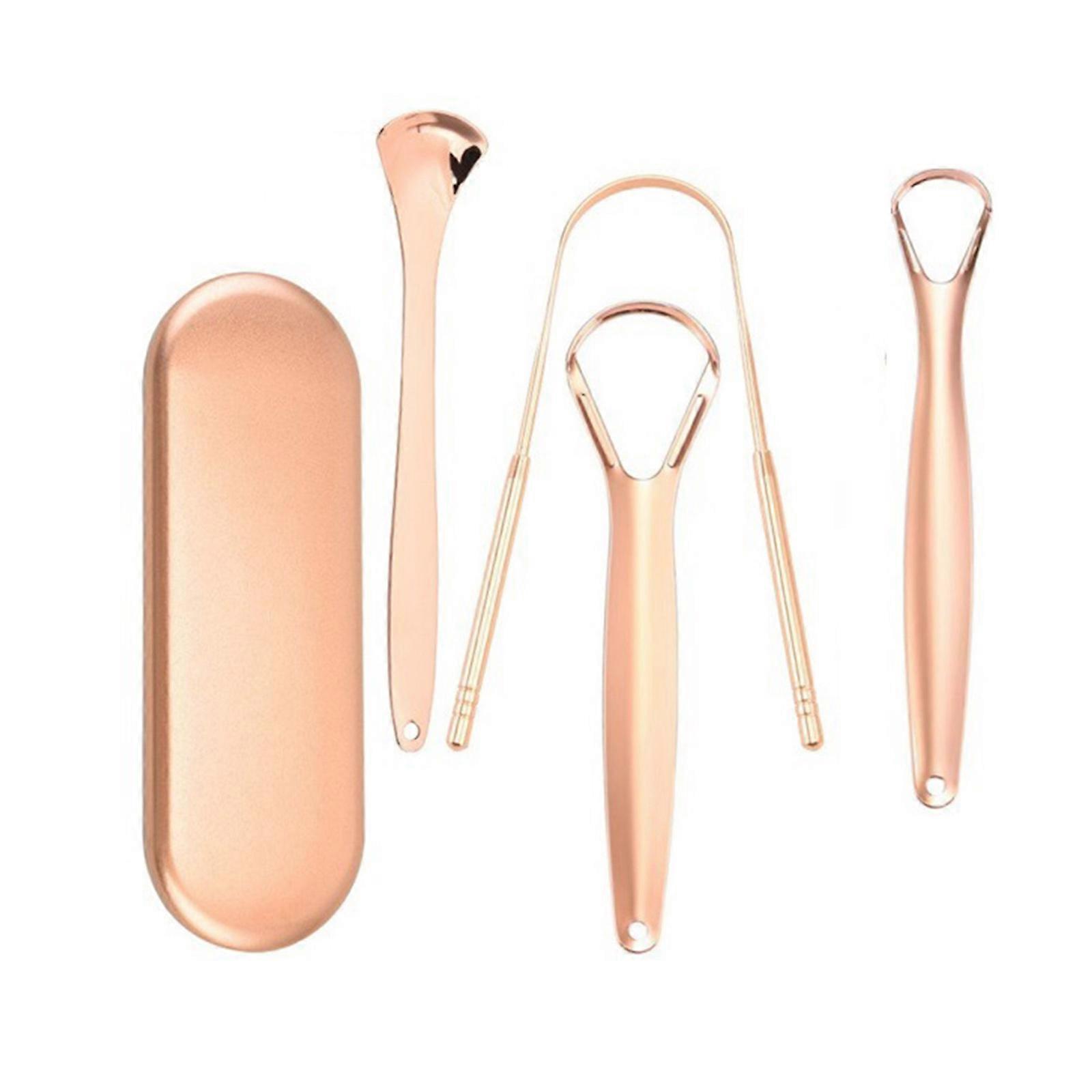 4Pcs Rose Gold Tongue Cleaner Stainless Steel Tongue Cleaner with Carrying Case for Dental Health and Reduce Bad Breath Multicolor