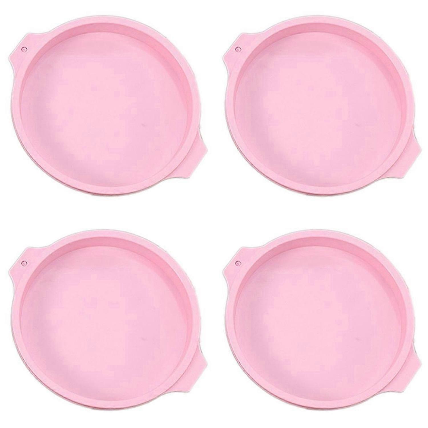 4Pcs Cake Pan Round Cake Layer Set Silicone Bakeware Mold,Pink,8Inch