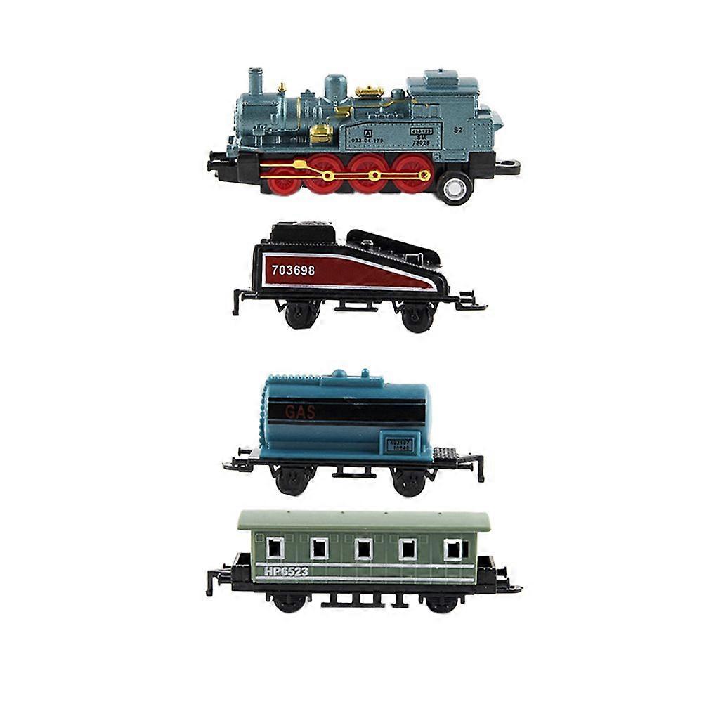4Pcs Alloy Toy Car Vehicles Retro Steam Train Pull Back Model Train Kids Toys Set for Boys Gifts (Sky-blue)