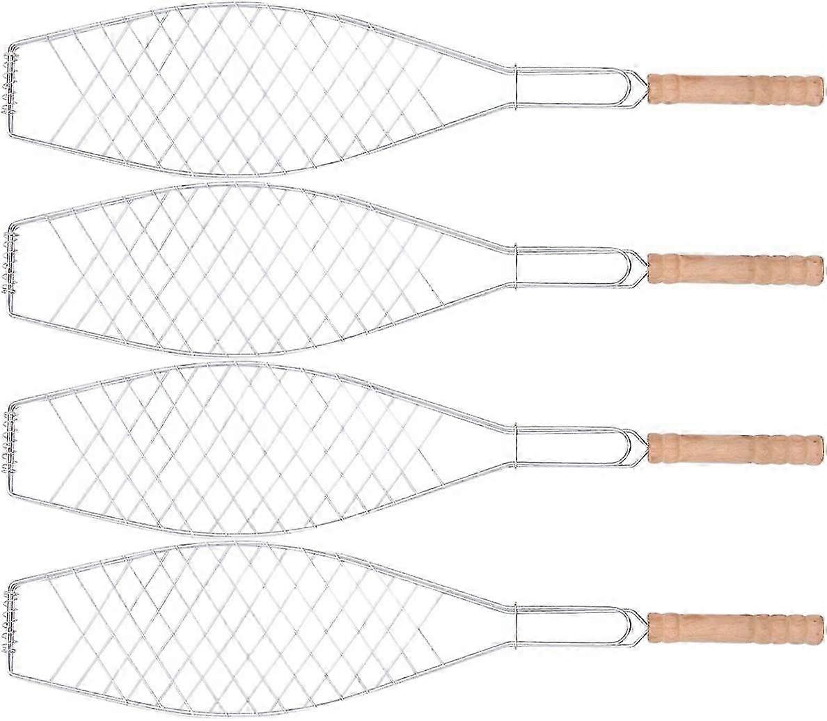 4Pcs Foldable BBQ Grill Basket with Removable Handle for Fish Meat