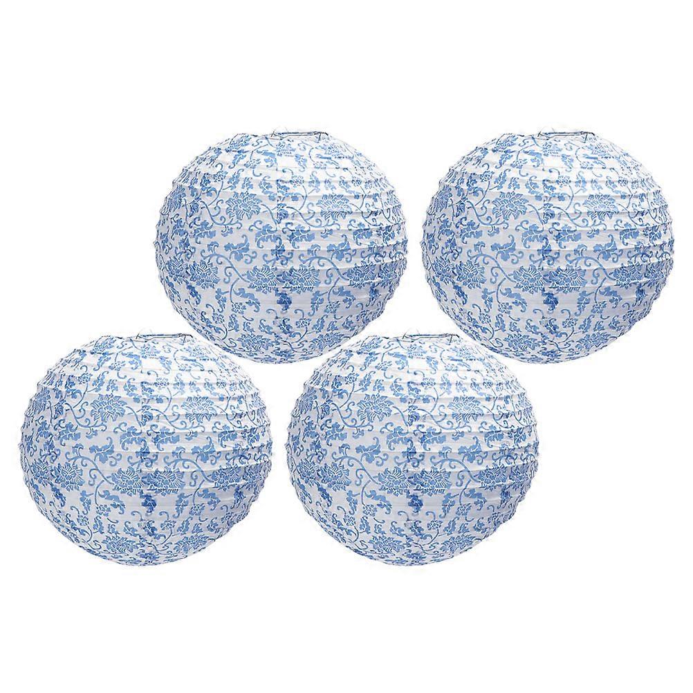 4pcs Folding Paper Lanterns, Chic Porcelain Lampshade, Decorative Hanging Ornament for Living Room or Bedroom, Soft Light, Minimalist Design, Easy