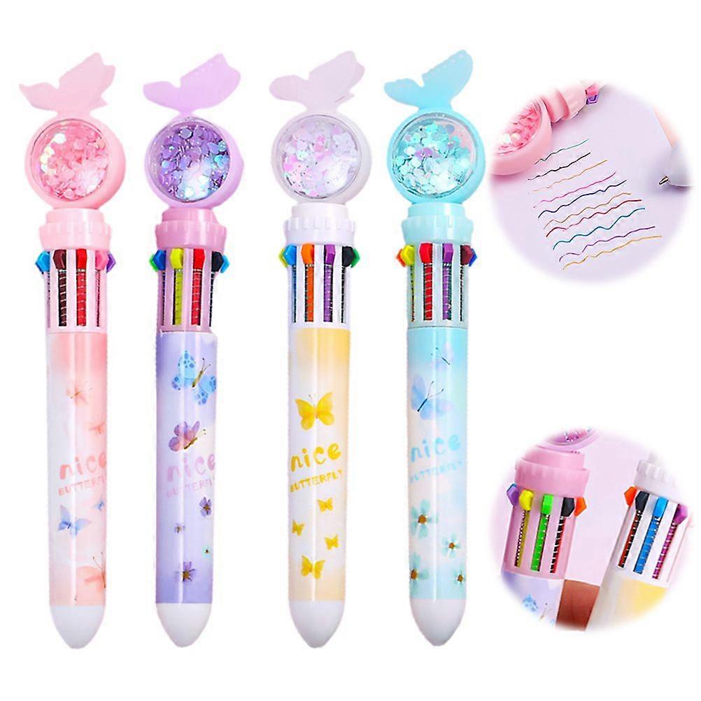 4Pcs Cartoon Butterfly 10in1 Retractable Ballpoint Pens 10 Colors Ballpoint Pen for Office School Supplies Students Children Gift