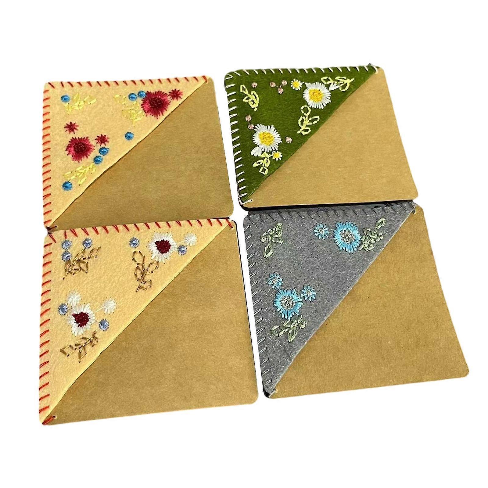 4 Pcs Lovely Flower Embroidery Book Markers Page Marker Hand Embroidered Corner Bookmarks Reading Supplies