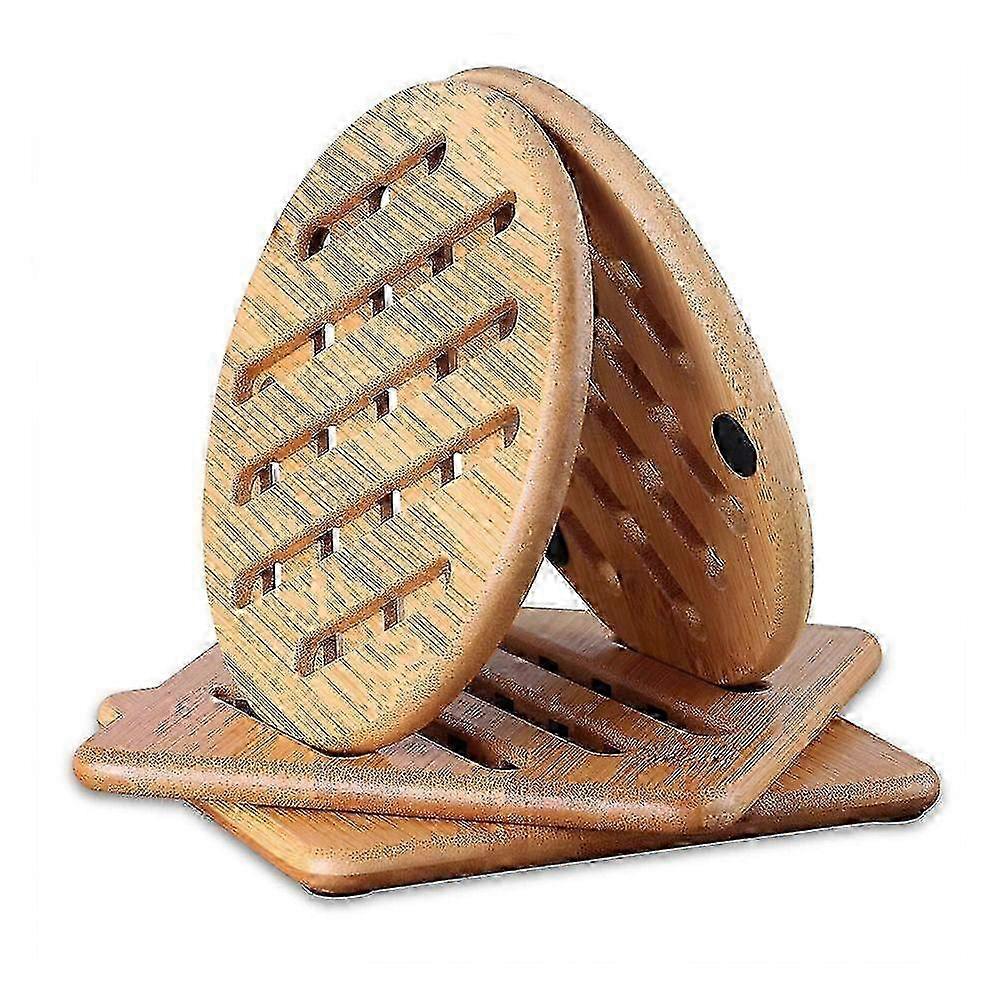 4 pieces heat resistant natural washable bamboo coasters square and round pan coasters with drainer for kitchen bowl pots plates