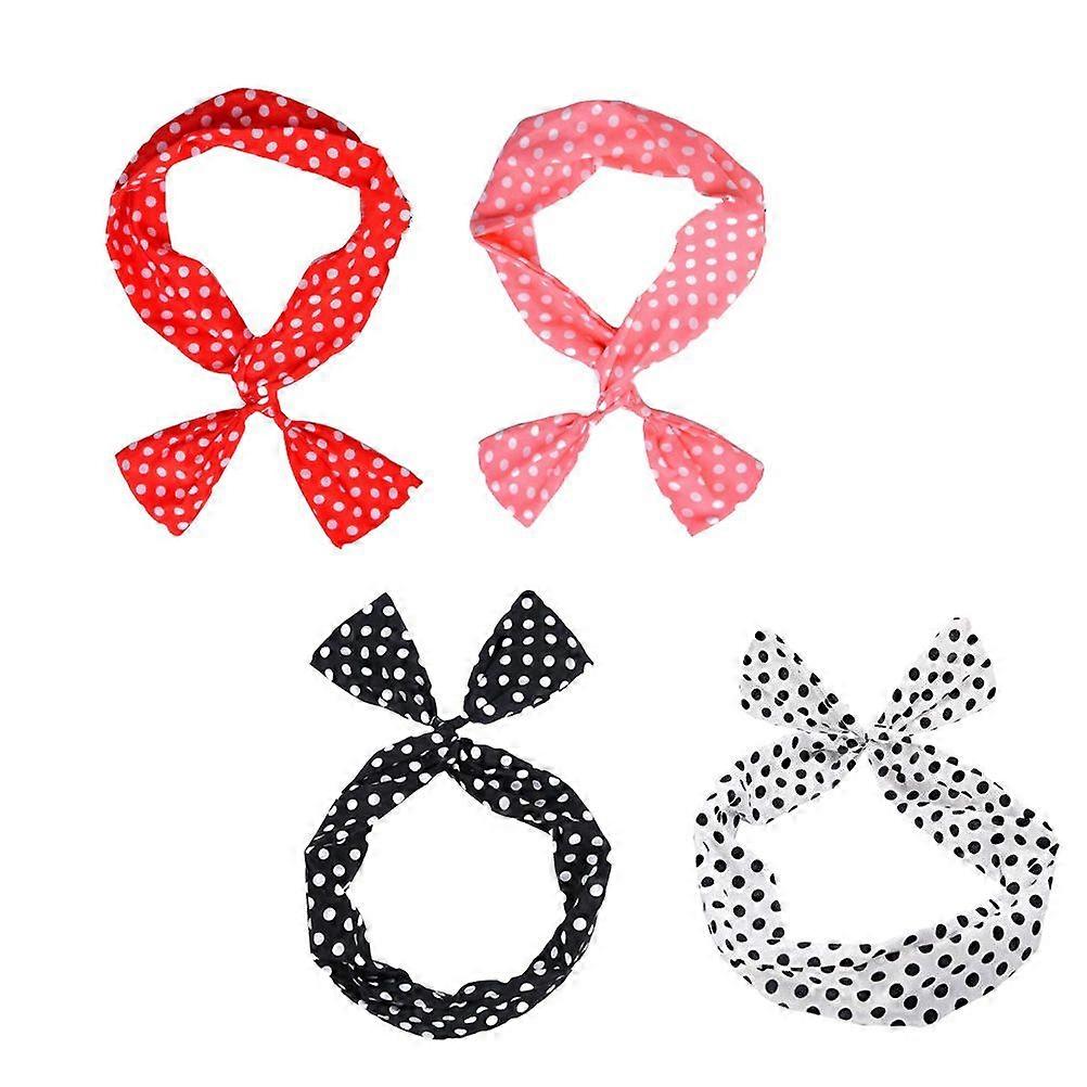 4Pcs Bowknot Hair Hoops Round Spot Pattern Headband Cross Headwrap Adorable Hair Band Women Headdress Red Light Pink Black White