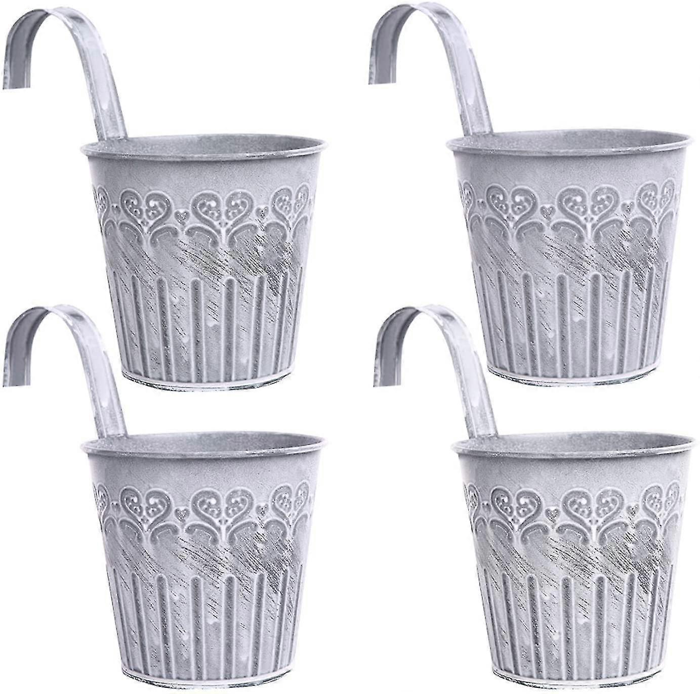 4 Pcs Metal Hanging Flower Pot Flower Pot With Hook Vintage Style For Decoration Balcony Garden Wall Outdoor And Indoor