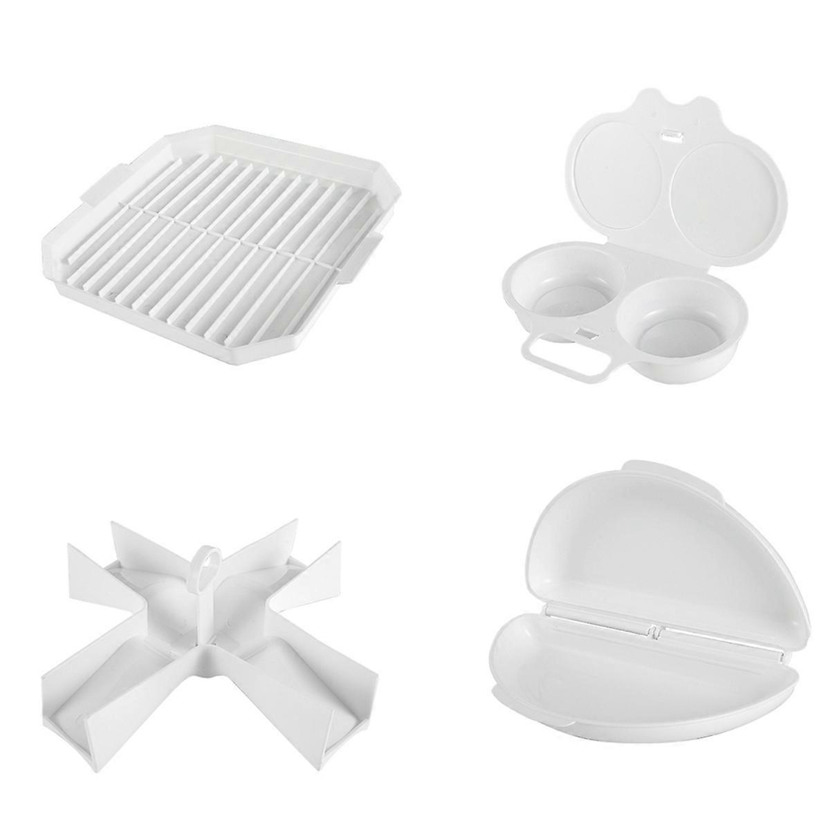 4Pcs Microwave Cooking Set Oven Cookware Set with Bacon Baking Plate Egg Steamer Fried Egg Box Potato Rack for Kitchen