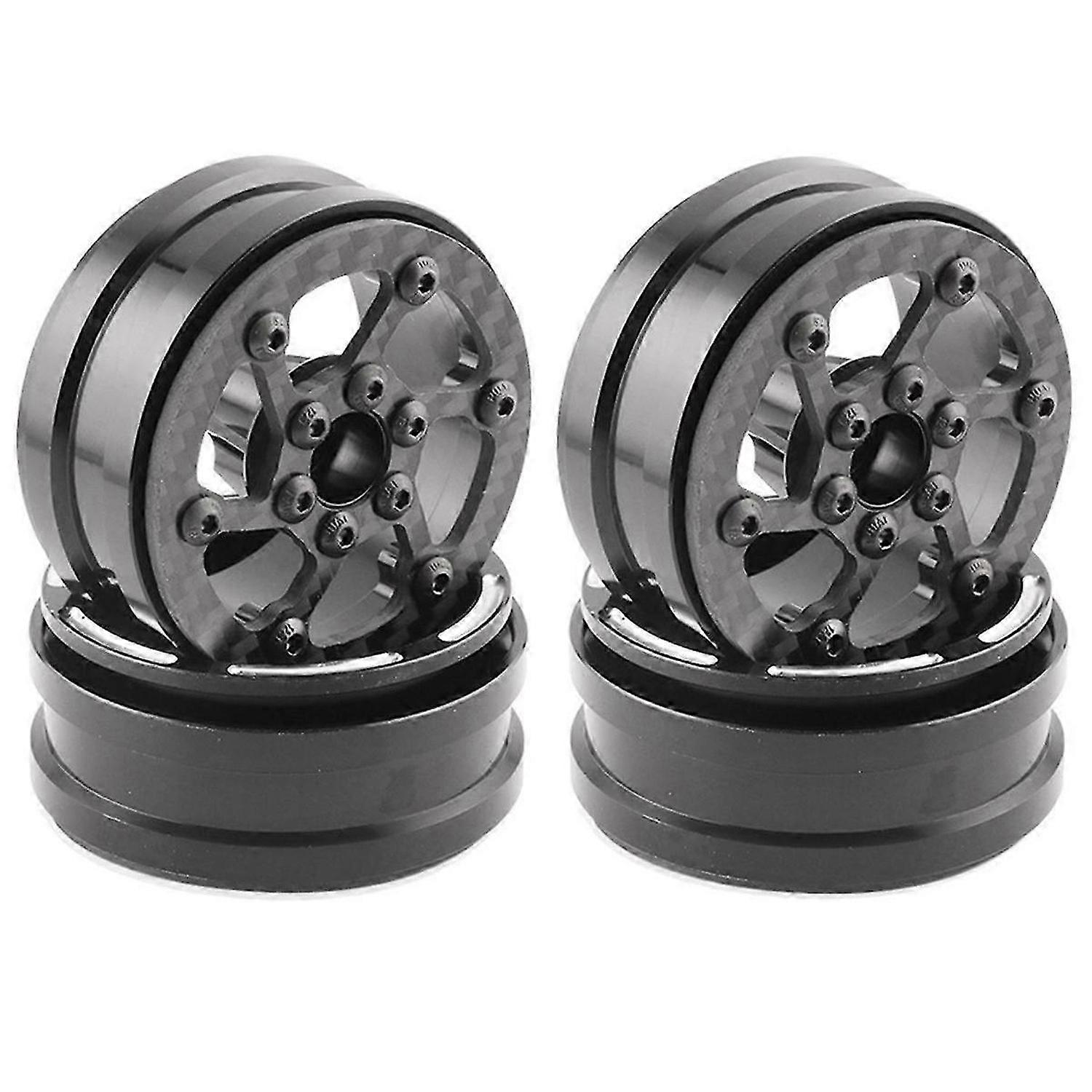 4Pcs Carbon Fiber 1.9inch Beadlock Wheel Rim Wheel Hub for 1/10 RC Crawler Car Axial SCX10 TRX4 F