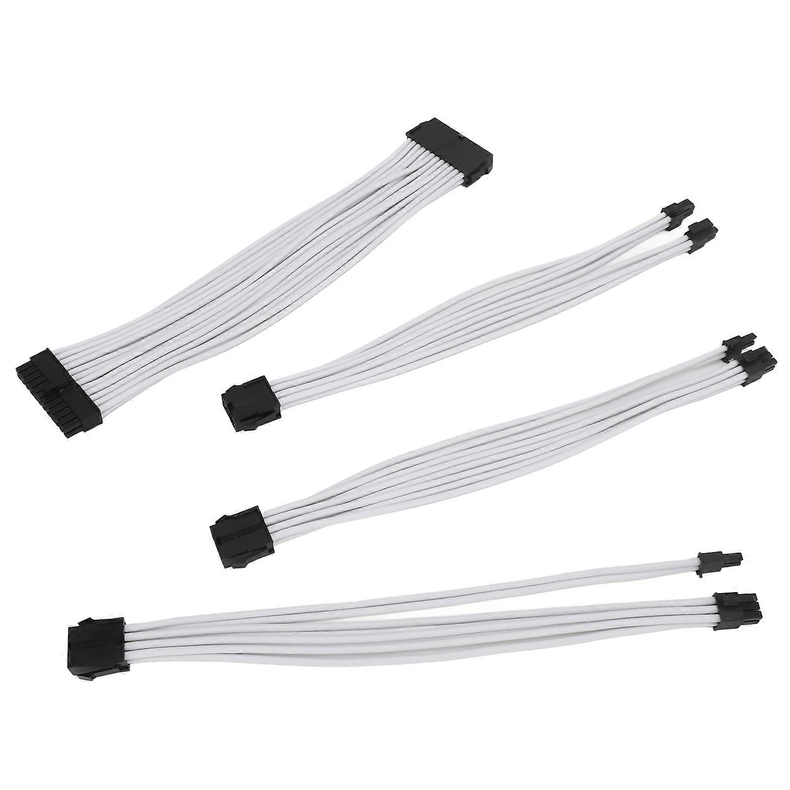 4PCS 18AWG PSU Cable Extension Power Cords 30cm Nylon Sleeved 24 Pin ATX 4+4Pin CPU 6+2Pin PCIE GPU Power Supply Extension Cable with Combs White