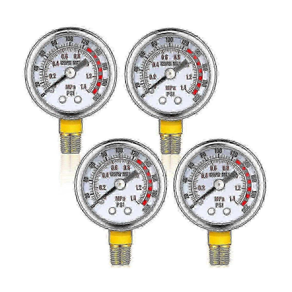 4Pcs 0-200 Psi Air Pressure Gauge 1/8In Male NPT Connection Air Gauge Lower Side Mount 1.57In Dial Air Compressor Gauge new A-G
