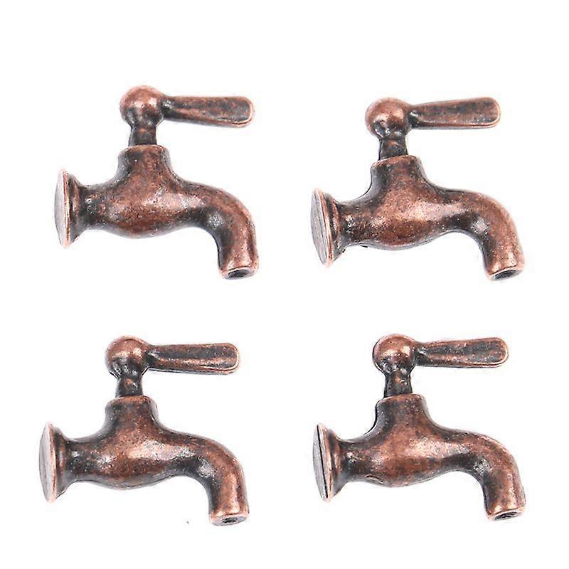 4pcs 1:12 Miniature Faucet Realistic Mini Mixer Tap Faucet Model Kitchen Accessory For Dollhouse Bathroom Decoration Accessories Dark Brown